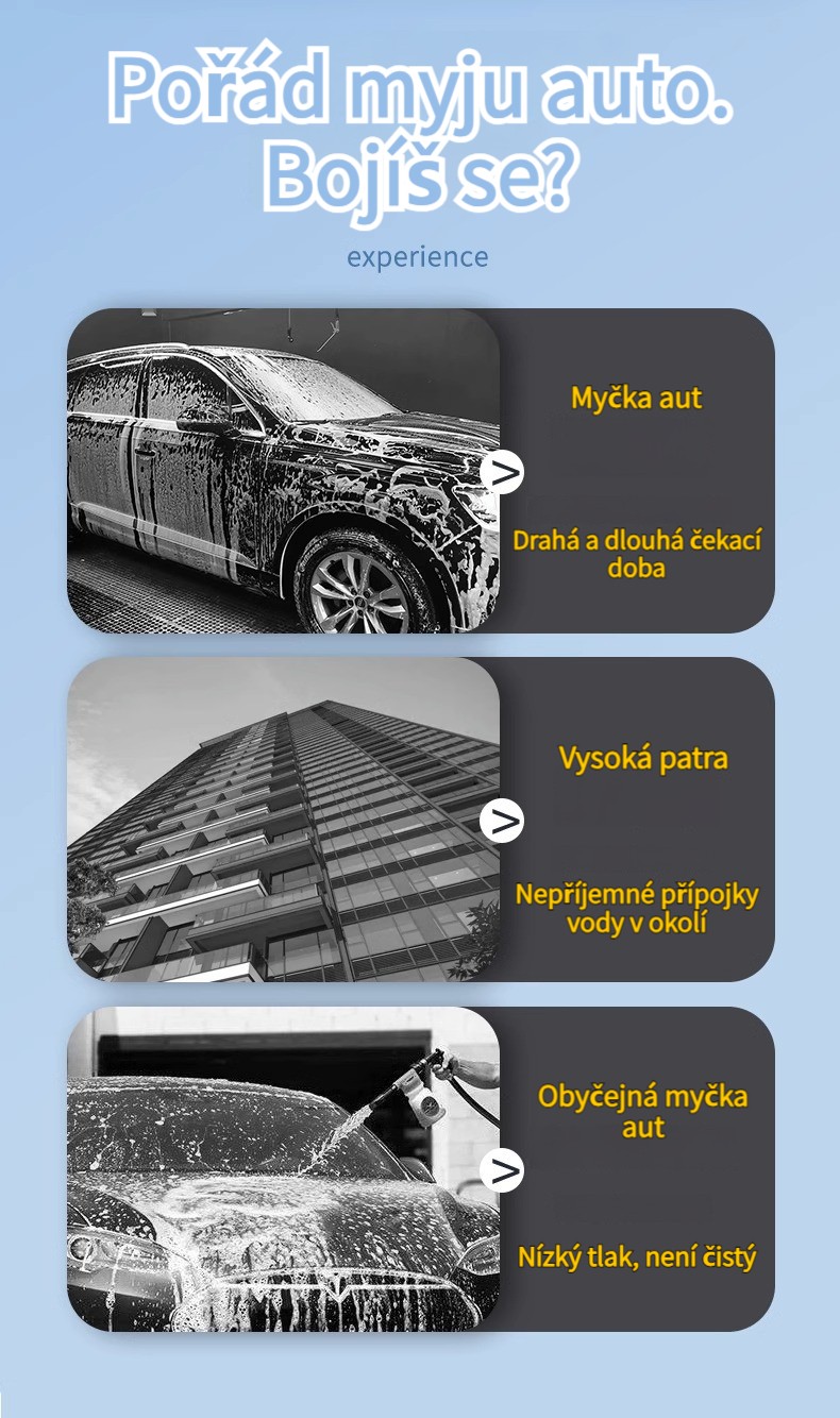 Pohodlná myčka automobilů, vysokotlaká myčka automobilů bez poškození laku, neomezené ve scénářích